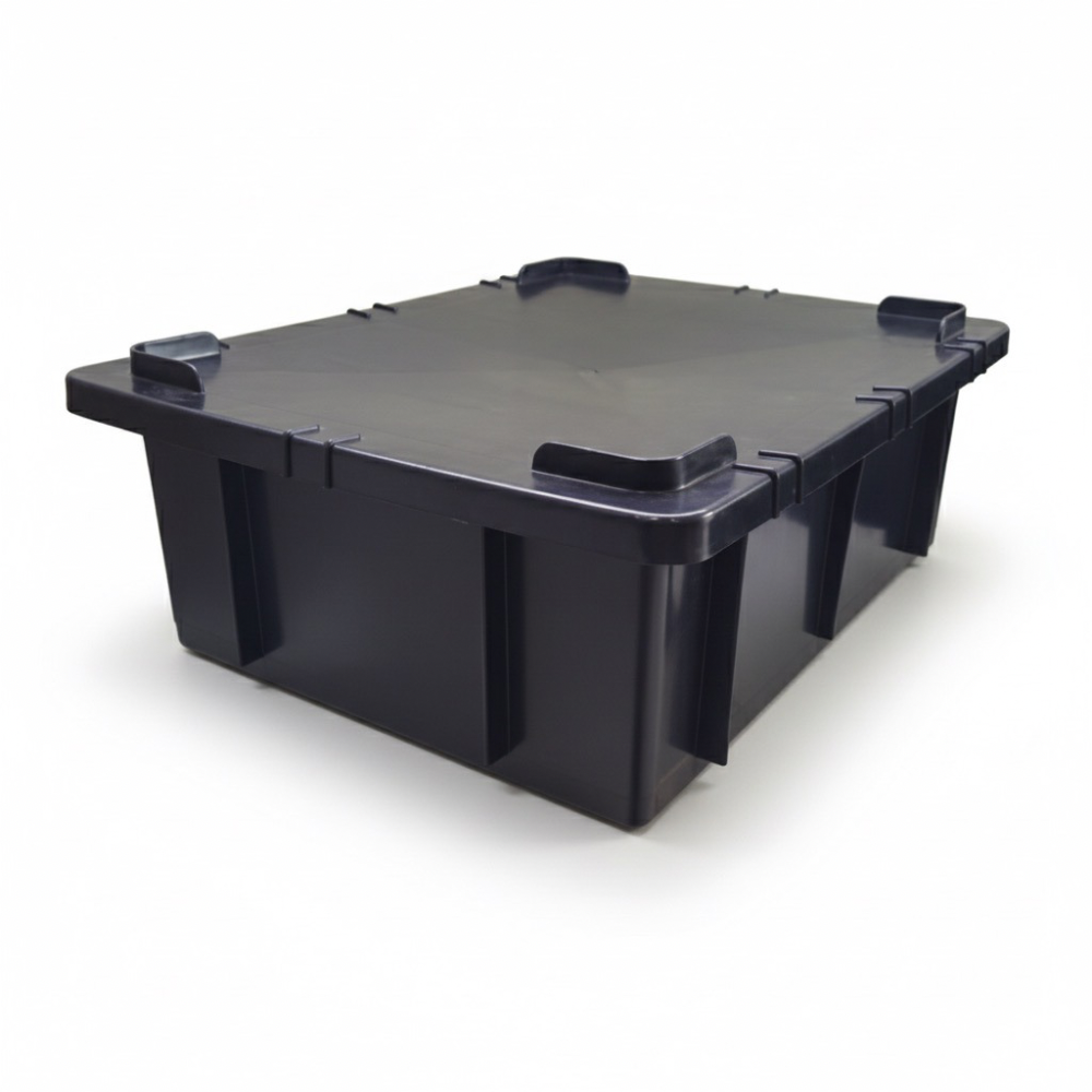 Caixa plástica fechada de 15 litros, fabricada em Polipropileno (PP), ideal para armazenamento e transporte de diversos materiais. Resistente, durável e fácil de limpar, oferece praticidade e segurança. A tampa é opcional e vendida separadamente.