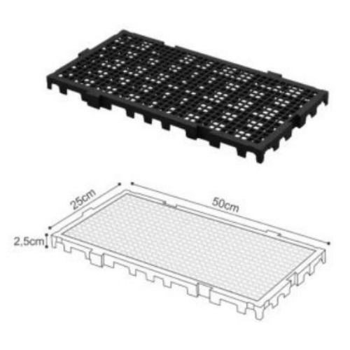 Os Pisos de Plásticos 50cm x 25cm são fabricados em Polietileno de Alta Densidade (PEAD) ou Poliprolipeno (PP).